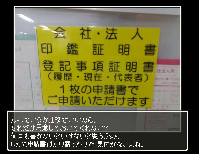 ここでも法人印鑑が必要になる。もはや申請を行う際には、関係する資料や印鑑をすべて持ち歩くようになった。主人公、かしこさ「2」の割には考えている。