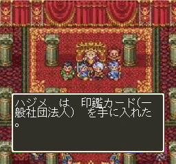 きょくいん「まずは印鑑カードが必要です。印鑑カードのコーナーは隣の部屋の5番窓口です。」ハジメは部屋を追い出された。