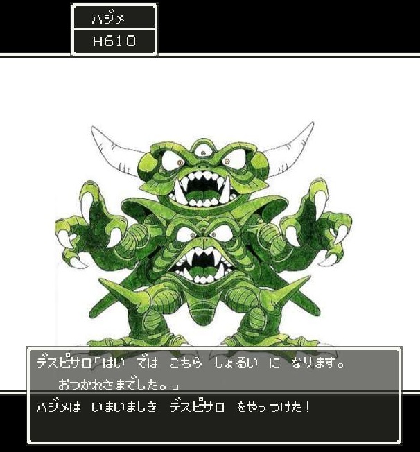 いや、お疲れさまでした。って言われているのにやっつけた気分である。それくらいには余裕がない。途中からもう、名前が「ほうむきょく きょくいん」ではなく、ダイレクトにデスピサロになっているが、気にしない。気分的には区別がついていない。