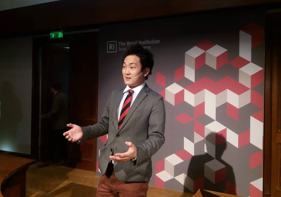 英国王立研究所(Royal Institution of Great Britain)ファラデーの法則で有名な、マイケル・ファラデーがクリスマスレクチャーで「ろうそくの科学」の講演をしたことで知られるファラデー・レクチャー・シアター。プロ仕様のピンマイクで、講演。英国物理学会主催のアウトリーチコンテストThree Minute Wonderの決勝大会。公式ページにも掲載されていた。